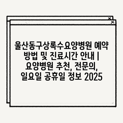 울산동구상록수요양병원 예약 방법 및 진료시간 안내 | 요양병원 추천, 전문의, 일요일 공휴일 정보 2025