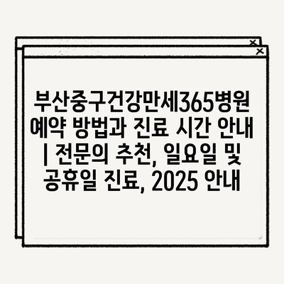 부산중구건강만세365병원 예약 방법과 진료 시간 안내 | 전문의 추천, 일요일 및 공휴일 진료, 2025 안내