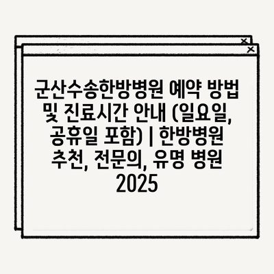 군산수송한방병원 예약 방법 및 진료시간 안내 (일요일, 공휴일 포함) | 한방병원 추천, 전문의, 유명 병원 2025