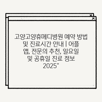 고양고양휴메디병원 예약 방법 및 진료시간 안내 | 어플 앱, 전문의 추천, 일요일 및 공휴일 진료 정보 2025″