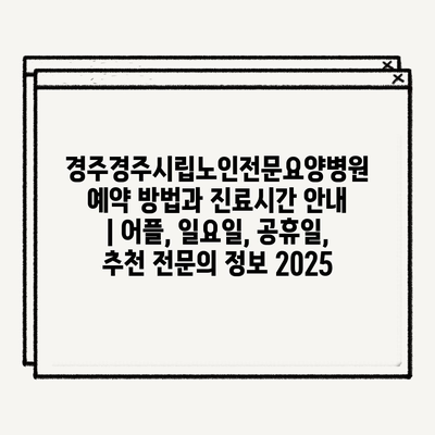 경주경주시립노인전문요양병원 예약 방법과 진료시간 안내 | 어플, 일요일, 공휴일, 추천 전문의 정보 2025