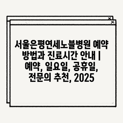 서울은평연세노블병원 예약 방법과 진료시간 안내 | 예약, 일요일, 공휴일, 전문의 추천, 2025
