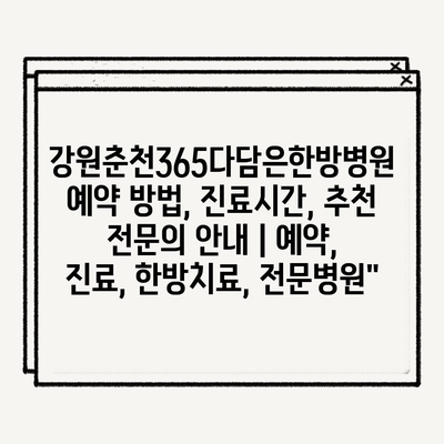 강원춘천365다담은한방병원 예약 방법, 진료시간, 추천 전문의 안내 | 예약, 진료, 한방치료, 전문병원”