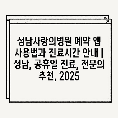 성남사랑의병원 예약 앱 사용법과 진료시간 안내 | 성남, 공휴일 진료, 전문의 추천, 2025