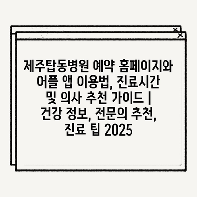 제주탑동병원 예약 홈페이지와 어플 앱 이용법, 진료시간 및 의사 추천 가이드 | 건강 정보, 전문의 추천, 진료 팁 2025
