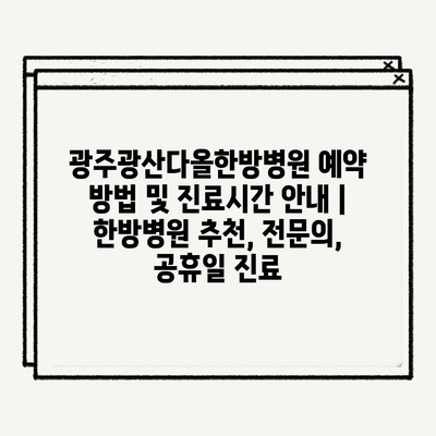광주광산다올한방병원 예약 방법 및 진료시간 안내 | 한방병원 추천, 전문의, 공휴일 진료