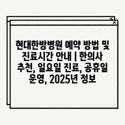현대한방병원 예약 방법 및 진료시간 안내 | 한의사 추천, 일요일 진료, 공휴일 운영, 2025년 정보