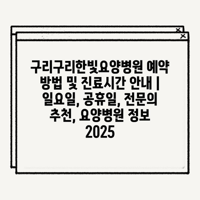 구리구리한빛요양병원 예약 방법 및 진료시간 안내 | 일요일, 공휴일, 전문의 추천, 요양병원 정보 2025