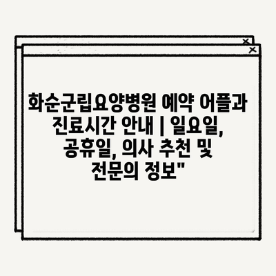 화순군립요양병원 예약 어플과 진료시간 안내 | 일요일, 공휴일, 의사 추천 및 전문의 정보”