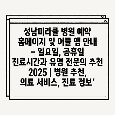 성남미라클 병원 예약 홈페이지 및 어플 앱 안내 – 일요일, 공휴일 진료시간과 유명 전문의 추천 2025 | 병원 추천, 의료 서비스, 진료 정보’