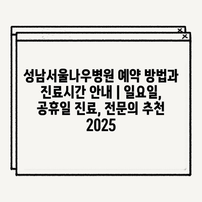 성남서울나우병원 예약 방법과 진료시간 안내 | 일요일, 공휴일 진료, 전문의 추천 2025