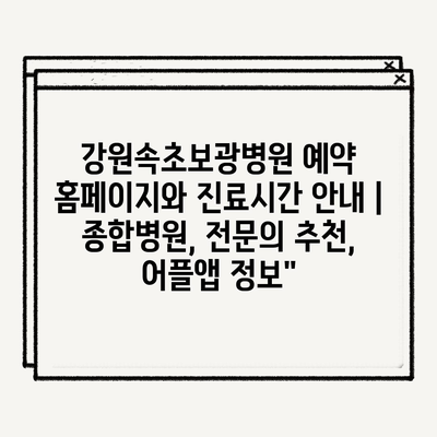 강원속초보광병원 예약 홈페이지와 진료시간 안내 | 종합병원, 전문의 추천, 어플앱 정보”