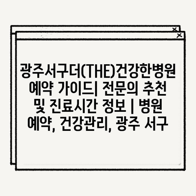 광주서구더(THE)건강한병원 예약 가이드| 전문의 추천 및 진료시간 정보 | 병원 예약, 건강관리, 광주 서구
