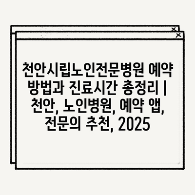 천안시립노인전문병원 예약 방법과 진료시간 총정리 | 천안, 노인병원, 예약 앱, 전문의 추천, 2025