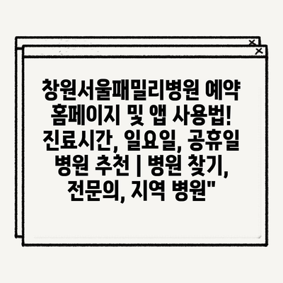 창원서울패밀리병원 예약 홈페이지 및 앱 사용법! 진료시간, 일요일, 공휴일 병원 추천 | 병원 찾기, 전문의, 지역 병원”