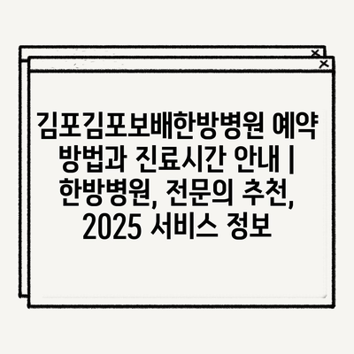 김포김포보배한방병원 예약 방법과 진료시간 안내 | 한방병원, 전문의 추천, 2025 서비스 정보