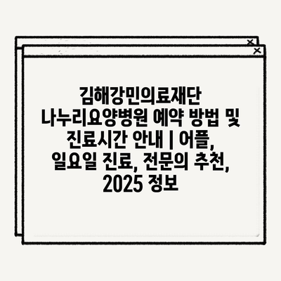 김해강민의료재단 나누리요양병원 예약 방법 및 진료시간 안내 | 어플, 일요일 진료, 전문의 추천, 2025 정보