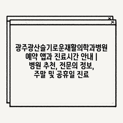 광주광산슬기로운재활의학과병원 예약 앱과 진료시간 안내 | 병원 추천, 전문의 정보, 주말 및 공휴일 진료
