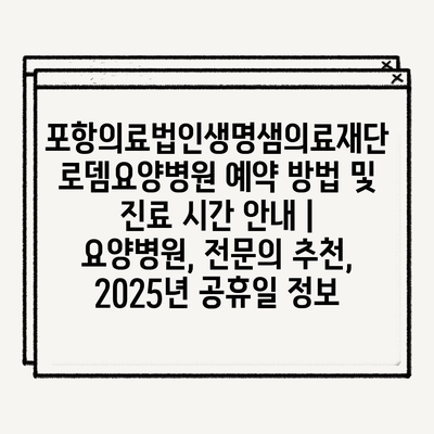 포항의료법인생명샘의료재단 로뎀요양병원 예약 방법 및 진료 시간 안내 | 요양병원, 전문의 추천, 2025년 공휴일 정보
