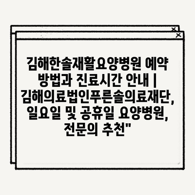 안동유리한방병원 예약 및 진료시간 안내 | 안동 의료법인, 전문의 추천, 일요일·공휴일 진료, 2025년 정보