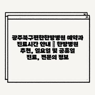 광주북구편한한방병원 예약과 진료시간 안내 | 한방병원 추천, 일요일 및 공휴일 진료, 전문의 정보