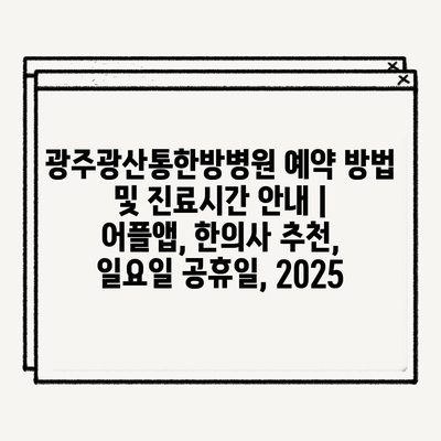 광주광산통한방병원 예약 방법 및 진료시간 안내 | 어플앱, 한의사 추천, 일요일 공휴일, 2025
