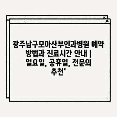 광주남구모아산부인과병원 예약 방법과 진료시간 안내 | 일요일, 공휴일, 전문의 추천’