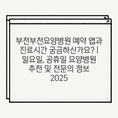 부천부천요양병원 예약 앱과 진료시간 궁금하신가요? | 일요일, 공휴일 요양병원 추천 및 전문의 정보 2025