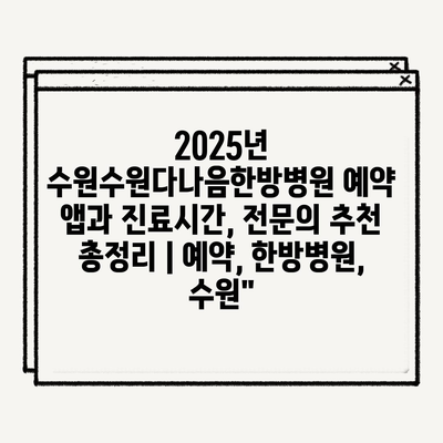 2025년 수원수원다나음한방병원 예약 앱과 진료시간, 전문의 추천 총정리 | 예약, 한방병원, 수원”