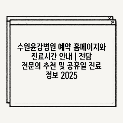 수원윤강병원 예약 홈페이지와 진료시간 안내 | 전담 전문의 추천 및 공휴일 진료 정보 2025