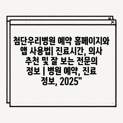 첨단우리병원 예약 홈페이지와 앱 사용법| 진료시간, 의사 추천 및 잘 보는 전문의 정보 | 병원 예약, 진료 정보, 2025″