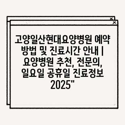 고양일산현대요양병원 예약 방법 및 진료시간 안내 | 요양병원 추천, 전문의, 일요일 공휴일 진료정보 2025″
