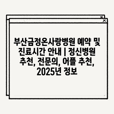 부산금정온사랑병원 예약 및 진료시간 안내 | 정신병원 추천, 전문의, 어플 추천, 2025년 정보