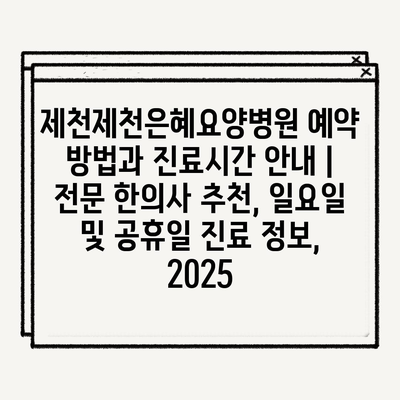 제천제천은혜요양병원 예약 방법과 진료시간 안내 | 전문 한의사 추천, 일요일 및 공휴일 진료 정보, 2025