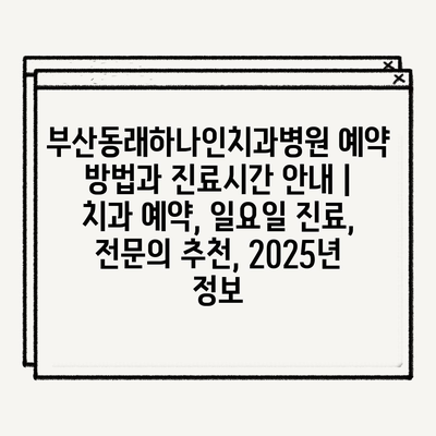 부산동래하나인치과병원 예약 방법과 진료시간 안내 | 치과 예약, 일요일 진료, 전문의 추천, 2025년 정보