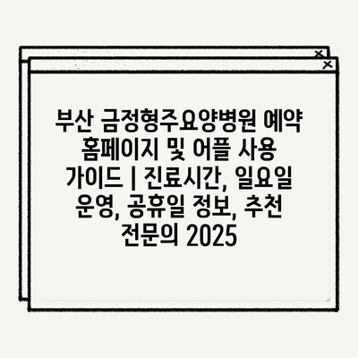 부산 금정형주요양병원 예약 홈페이지 및 어플 사용 가이드 | 진료시간, 일요일 운영, 공휴일 정보, 추천 전문의 2025
