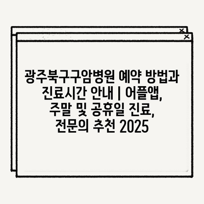 광주북구구암병원 예약 방법과 진료시간 안내 | 어플앱, 주말 및 공휴일 진료, 전문의 추천 2025