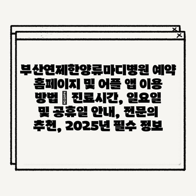 부산사상의료법인 현백의료재단 사상고려병원 예약 홈페이지와 앱 이용 가이드 | 진료시간, 전문의 추천, 일요일 공휴일 정보 2025