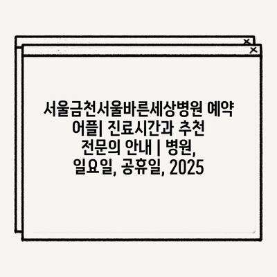 서울금천서울바른세상병원 예약 어플| 진료시간과 추천 전문의 안내 | 병원, 일요일, 공휴일, 2025