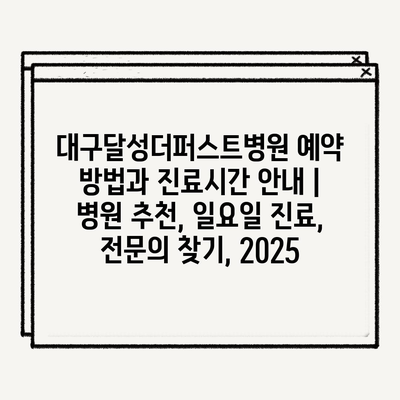 대구달성더퍼스트병원 예약 방법과 진료시간 안내 | 병원 추천, 일요일 진료, 전문의 찾기, 2025