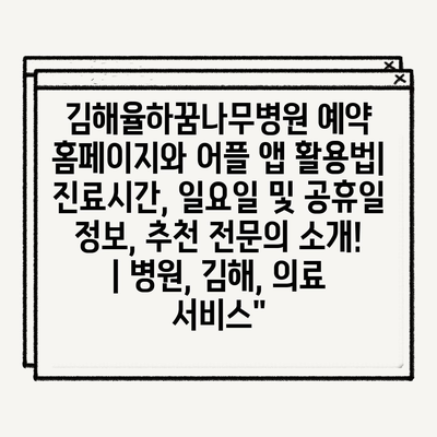 김해율하꿈나무병원 예약 홈페이지와 어플 앱 활용법| 진료시간, 일요일 및 공휴일 정보, 추천 전문의 소개! | 병원, 김해, 의료 서비스”