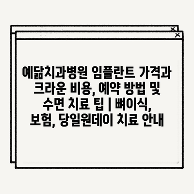 예닮치과병원 임플란트 가격과 크라운 비용, 예약 방법 및 수면 치료 팁 | 뼈이식, 보험, 당일원데이 치료 안내
