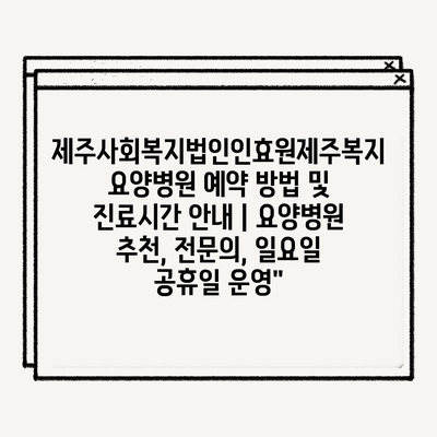 제주사회복지법인인효원제주복지요양병원 예약 방법 및 진료시간 안내 | 요양병원 추천, 전문의, 일요일 공휴일 운영”