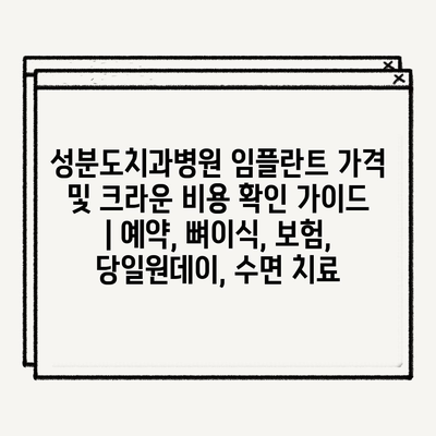 성분도치과병원 임플란트 가격 및 크라운 비용 확인 가이드 | 예약, 뼈이식, 보험, 당일원데이, 수면 치료